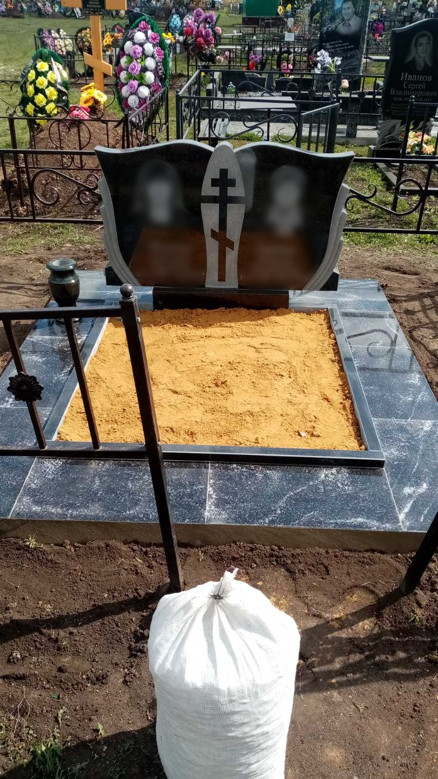 цветник, сверловка, портрет, ФИО+даты, крестик, доставка, установка.
