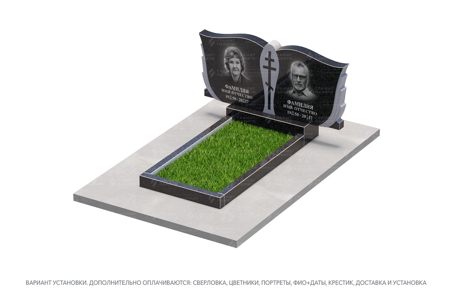 Памятник двойной универсален. Форма ФГ-136 подходит для увековечивания памяти и мужчины и женщины. Памятник из натурального Гранит не изменит своего первозданного вида многие десятилетия.