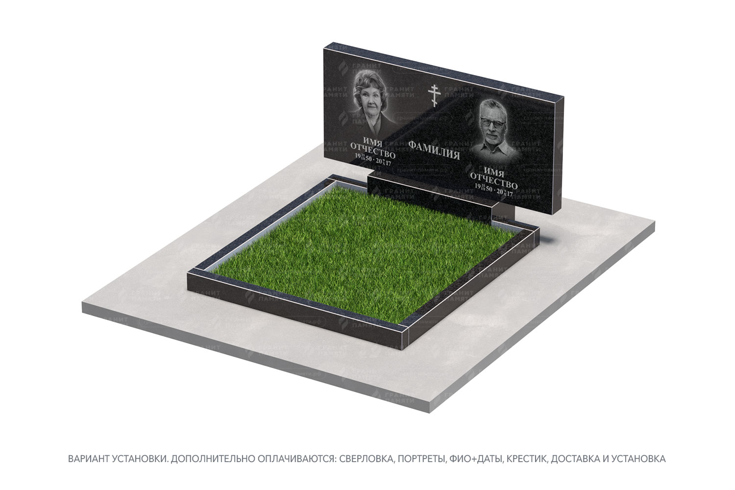 сверловка, портрет, ФИО+даты, крестик, доставка, установка.