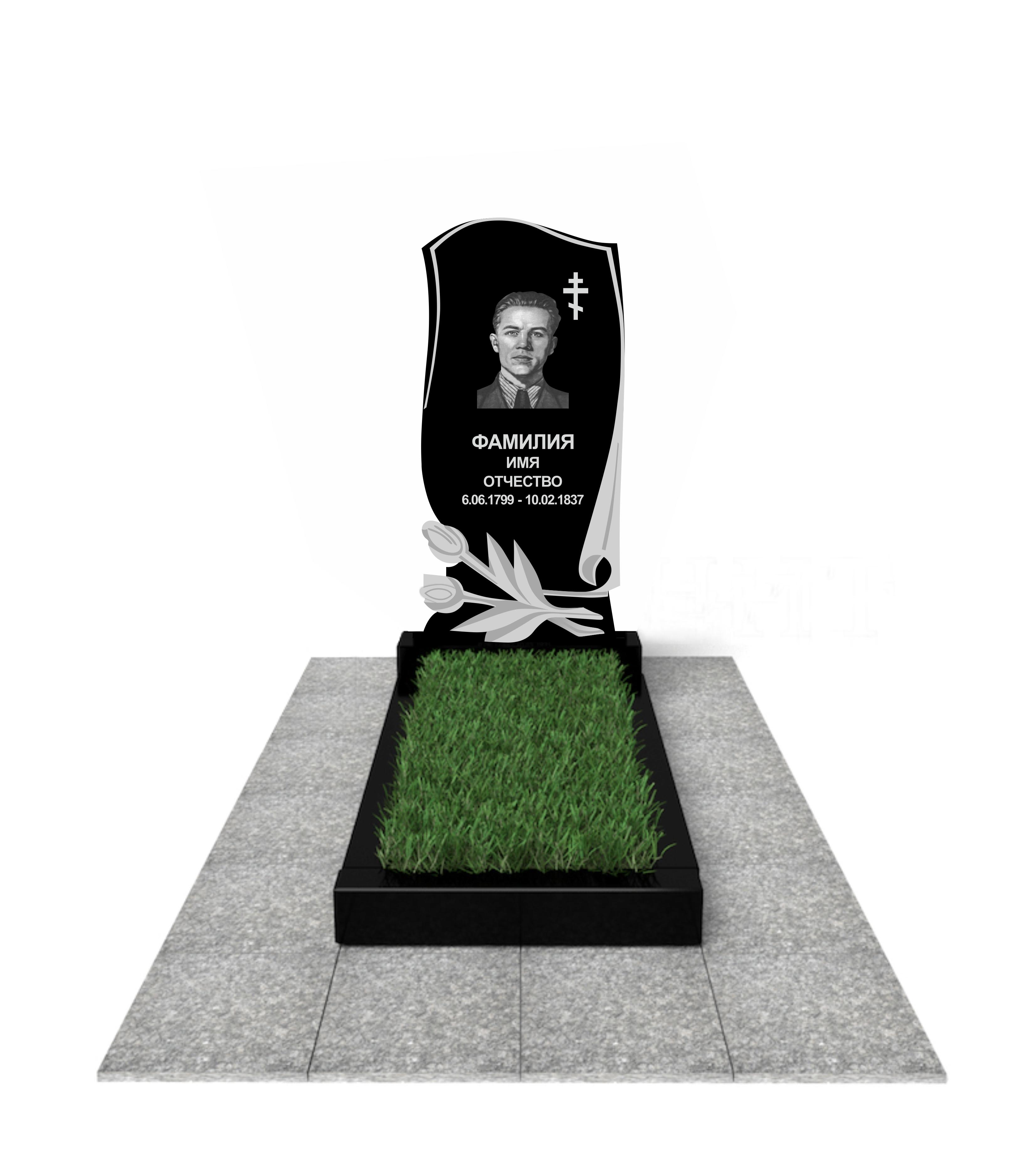 цветник, сверловка, портрет, ФИО+даты, крестик, доставка, установка.
