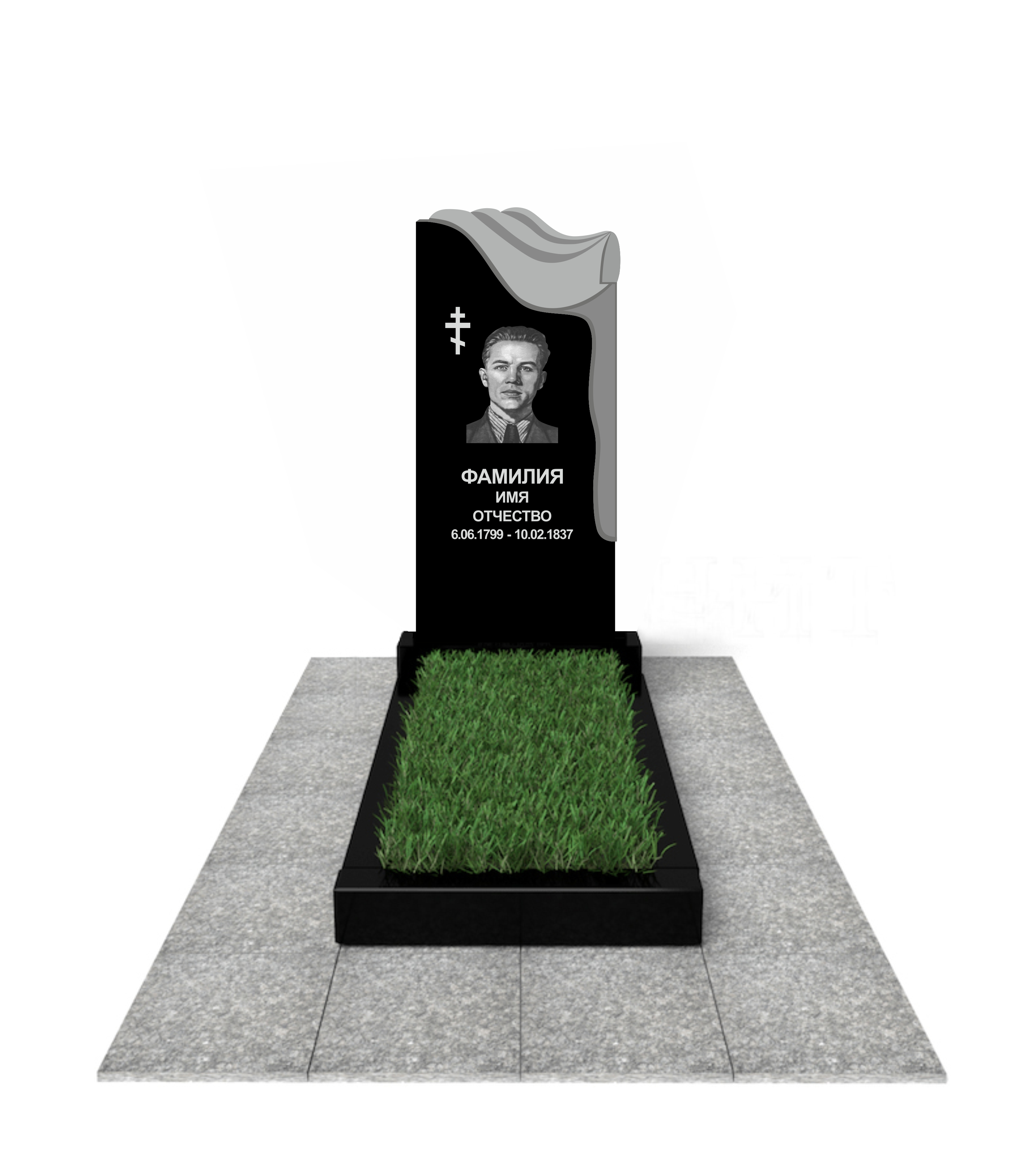 цветник, сверловка, портрет, ФИО+даты, крестик, доставка, установка.