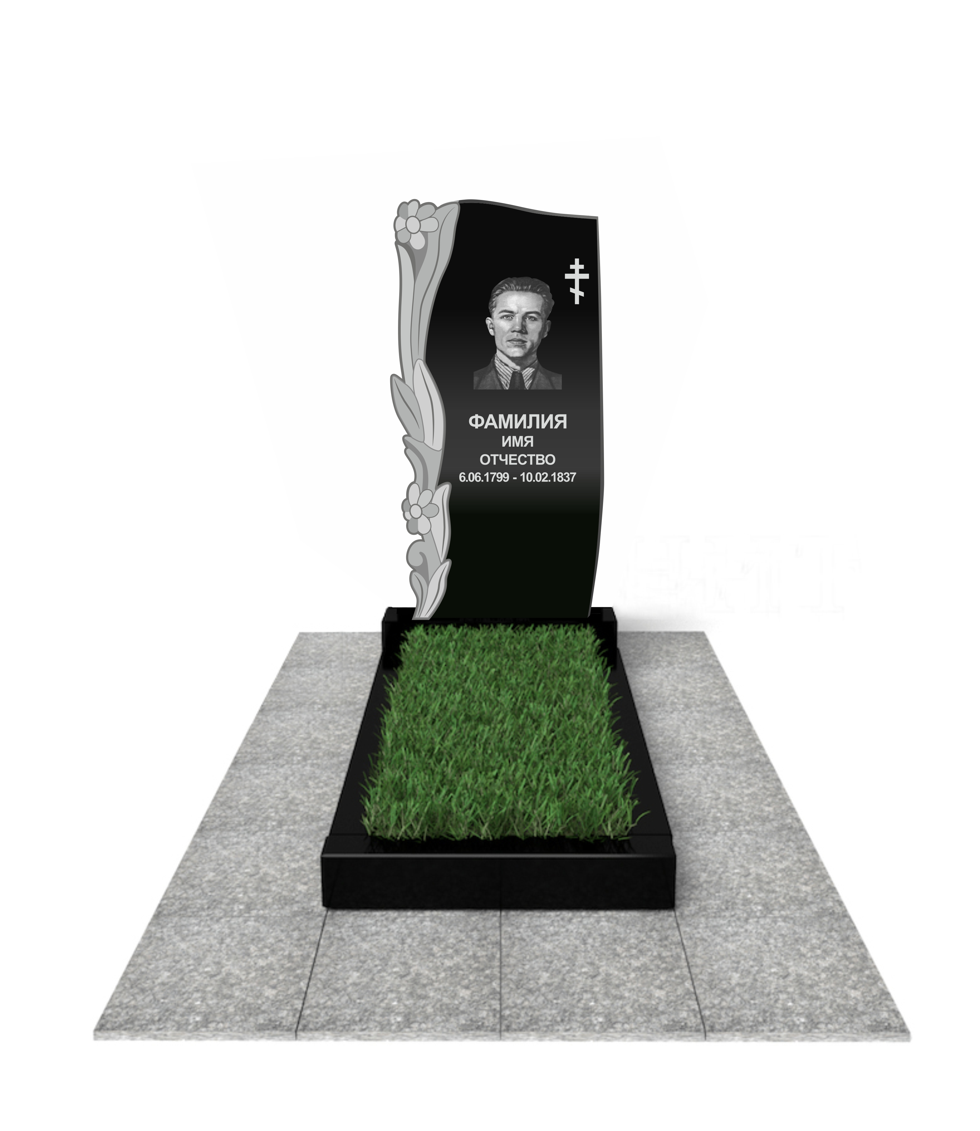 цветник, сверловка, портрет, ФИО+даты, крестик, доставка, установка.